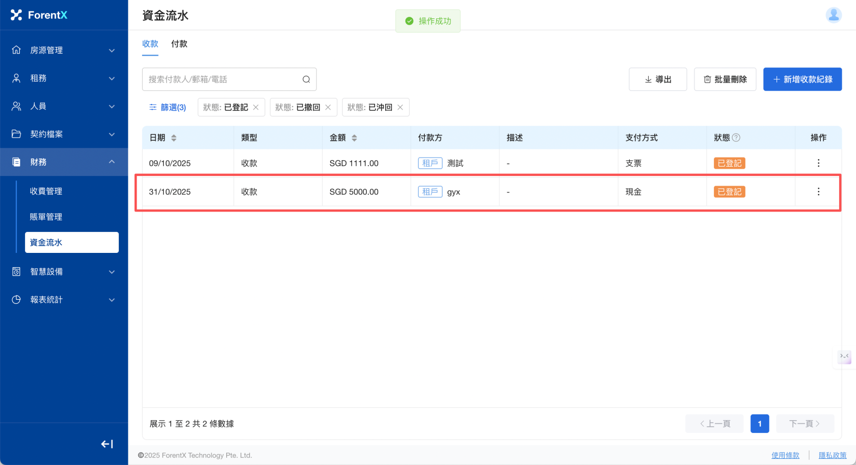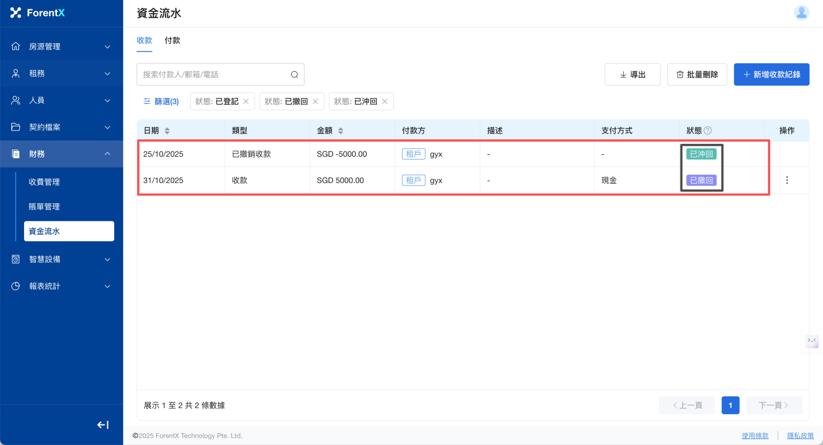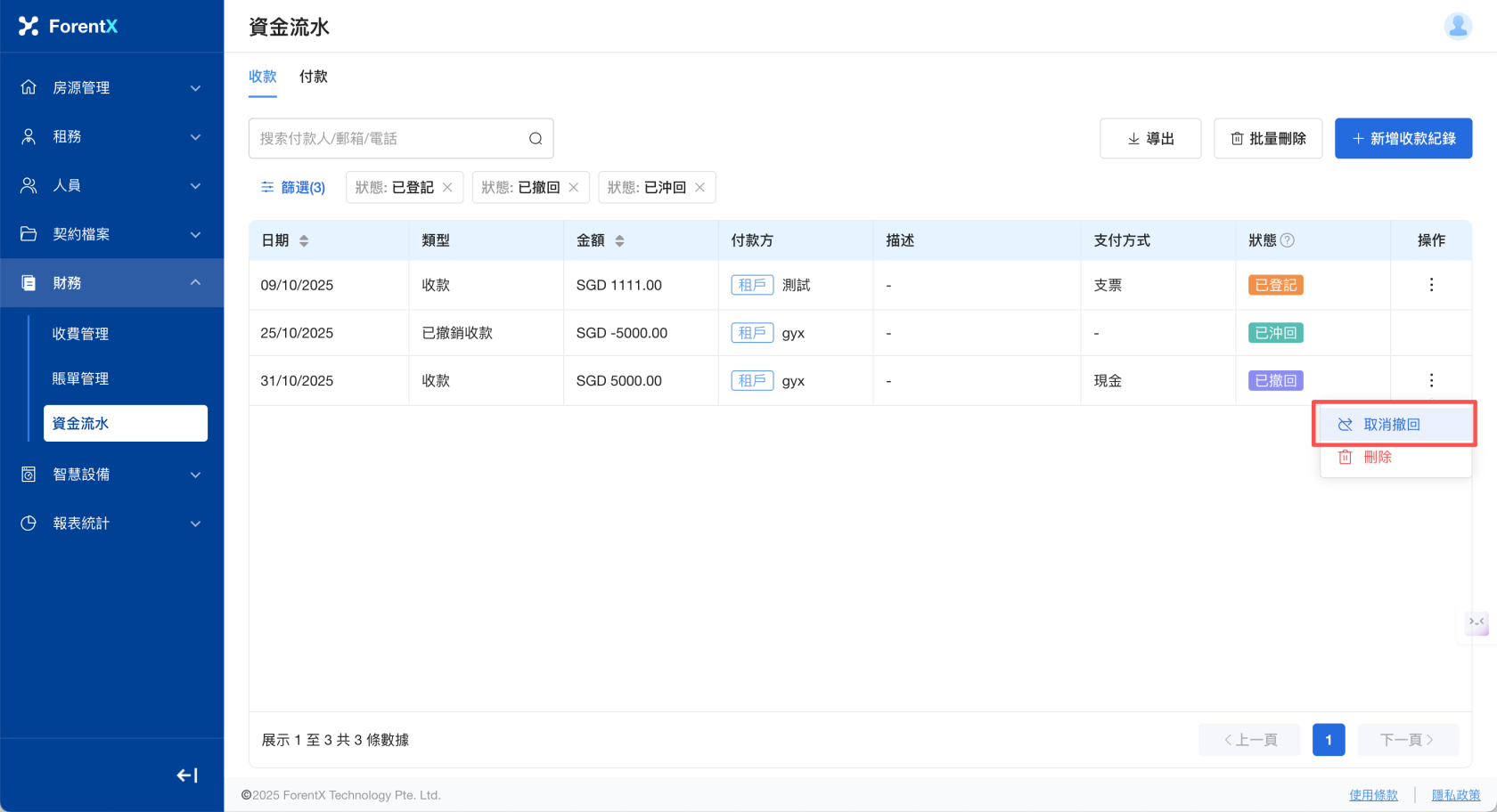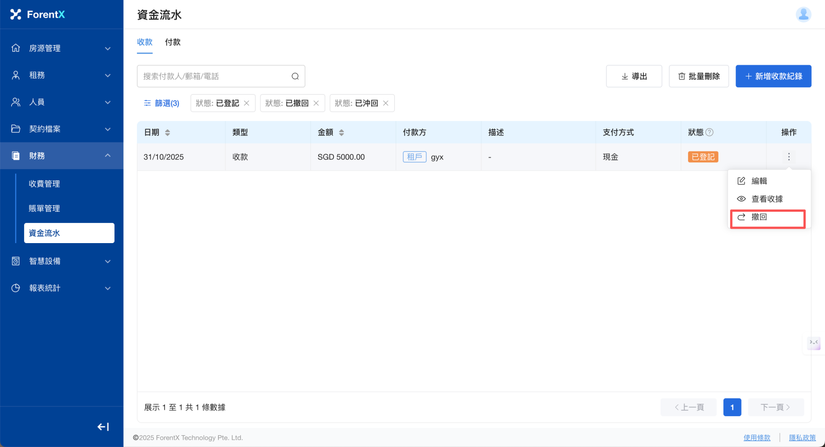 如果一筆收款流水登錄錯誤,我該如何撤銷它?