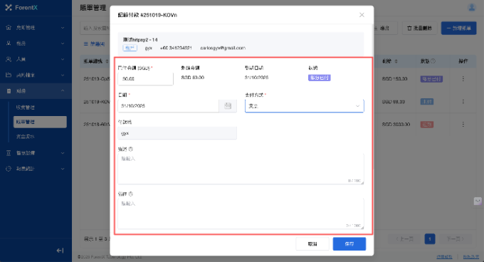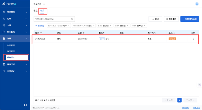 步驟三:步驟三: 點擊 【保存】[保存],【財務管理】 列表將為您更新數據。您也可以選擇跳轉到 【資金流水】[資金流水] 頁面,查看您生成的付款記錄。