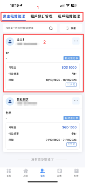 APP 端: 押金查看您可以透過 【業主租賃管理】/【租戶預訂】/【租戶租賃管理】 的租賃詳情頁 查看您持有的所有租賃按金。此處會聚合統計所有已收、已退或已抵扣的按金資訊。以下將以 【業主租賃管理】 為例。