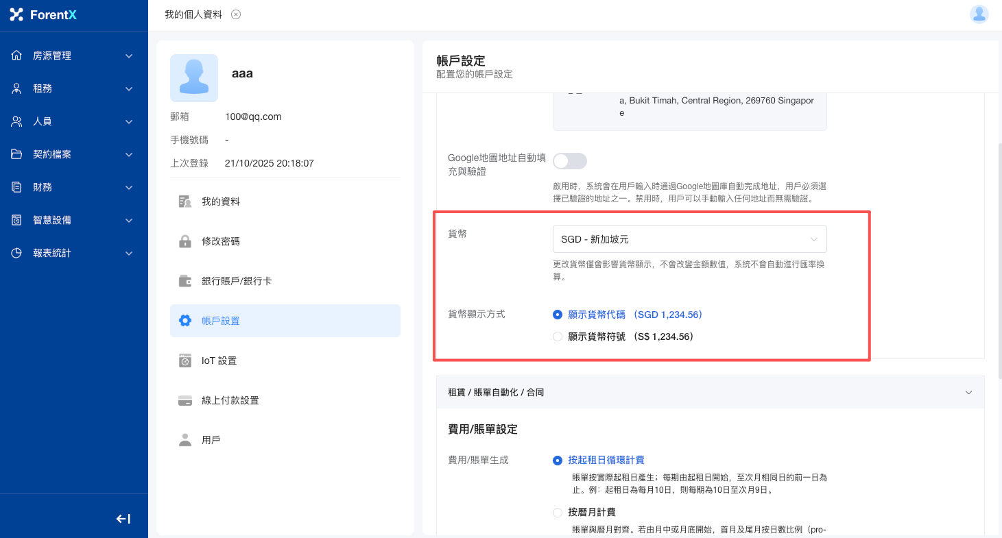 請您注意: 若您後續更改貨幣,僅會影響貨幣顯示,不會改變金額數值,系統不會自動進行匯率換算。