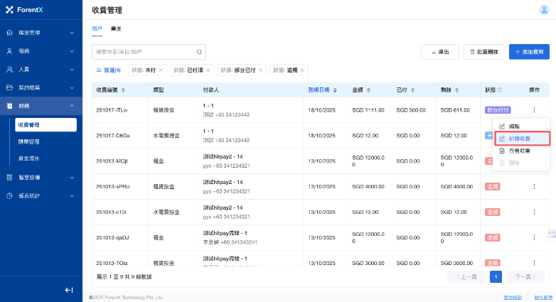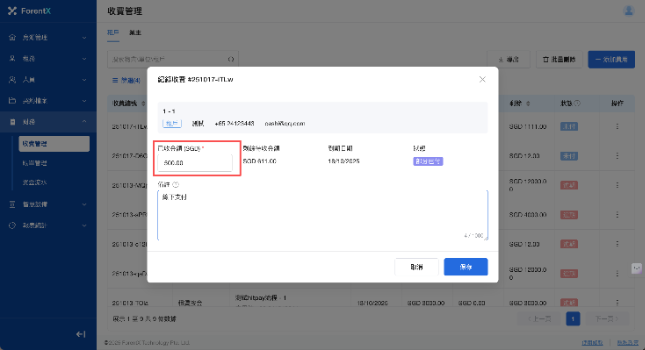 填寫 【已收金額】,點擊 【保存】。系統會為您更新該筆賬單的金額以及狀態。
