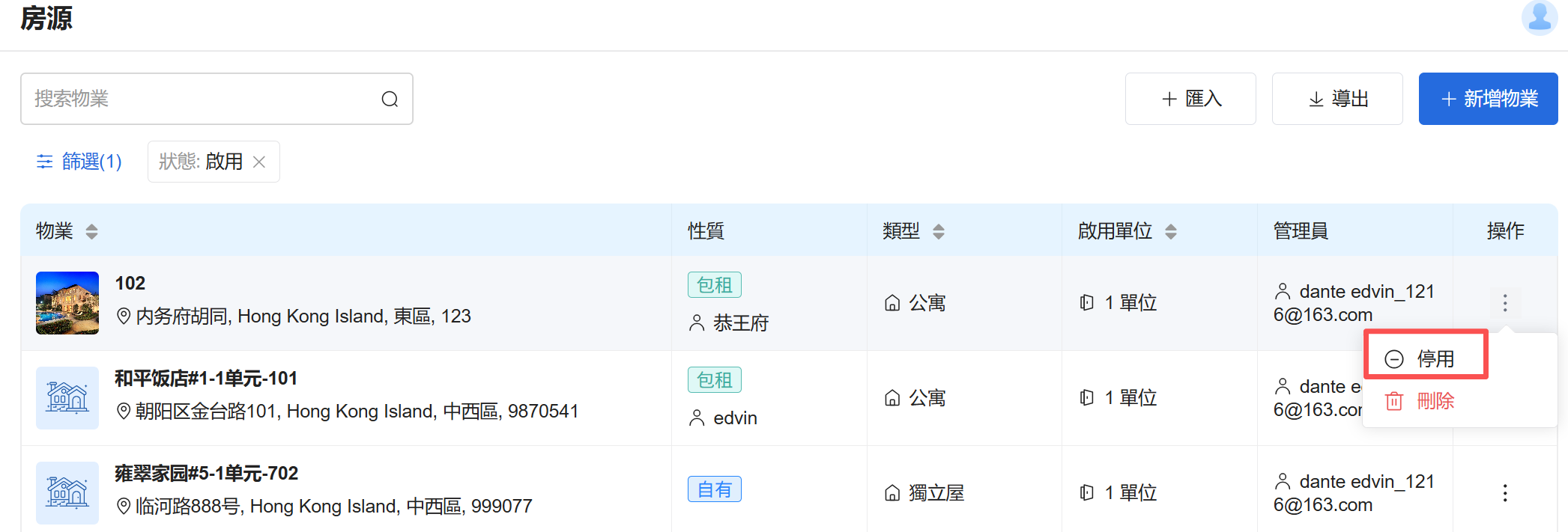 房源與業主管理