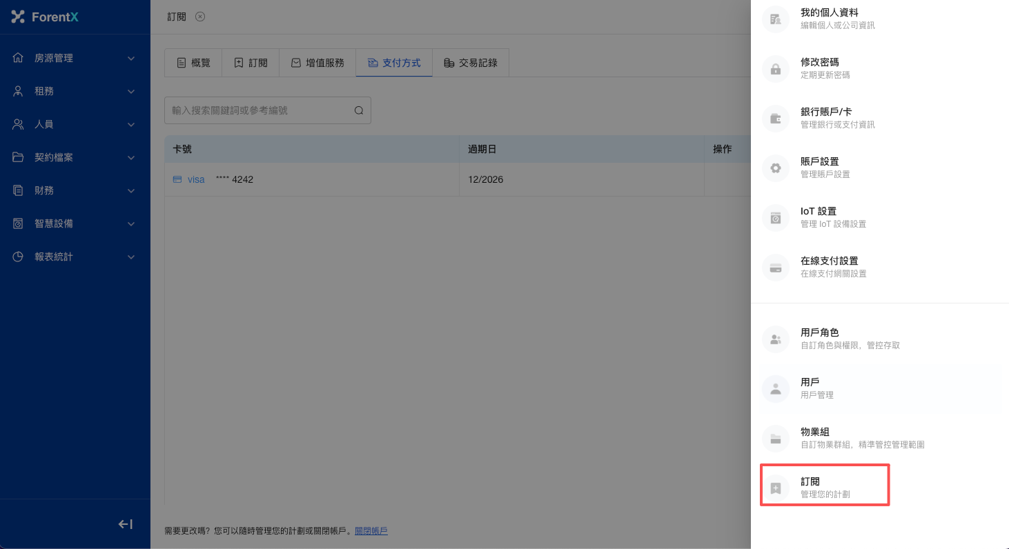 步驟一: 請選擇頁面頂部的 【頭像】—【訂閱】—【支付方式】。