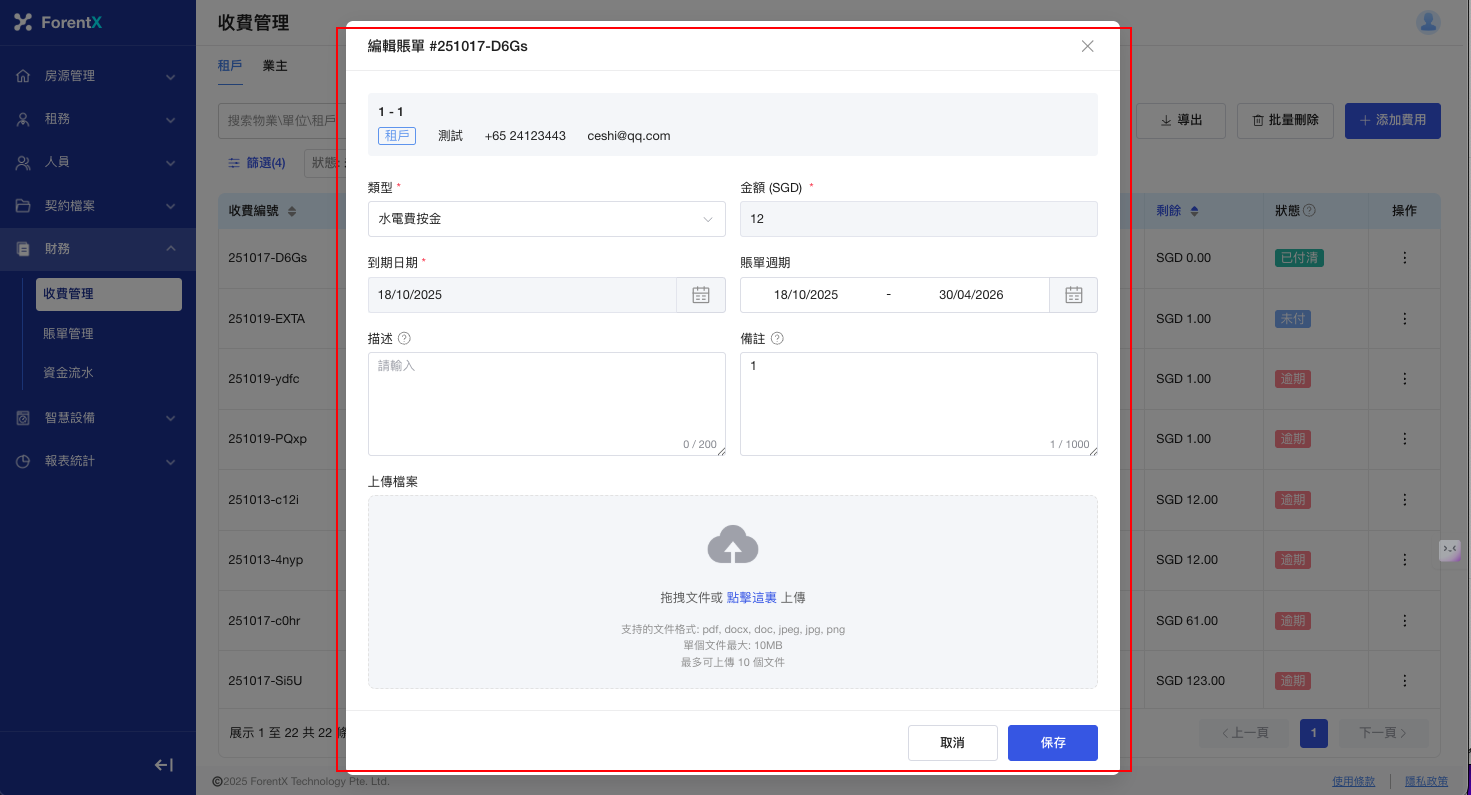 步驟三: 根據您的需求修改賬單內容,點擊 【保存】。系統會為您更新該筆賬單。