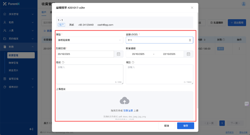 步驟三: 根據您的需求修改賬單內容,點擊 【保存】,系統將為您即時更新。