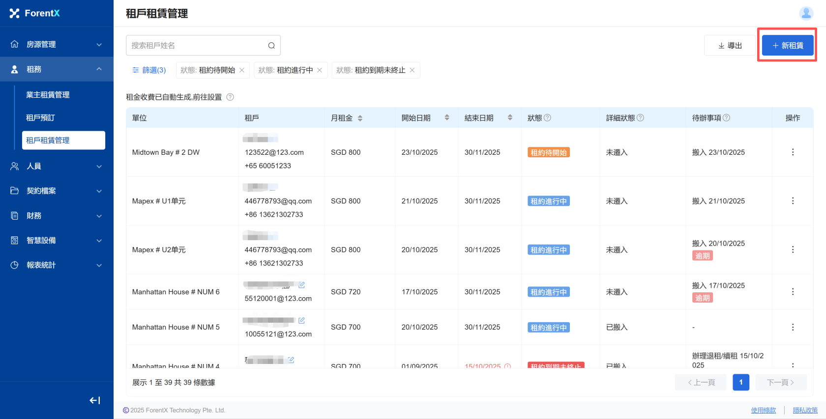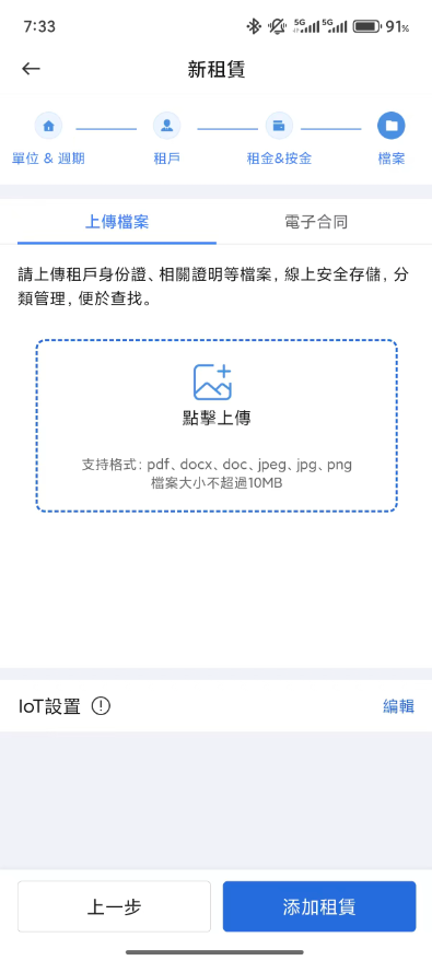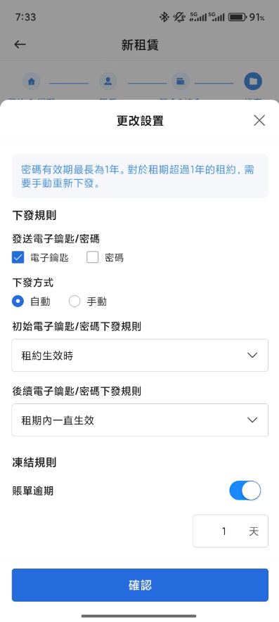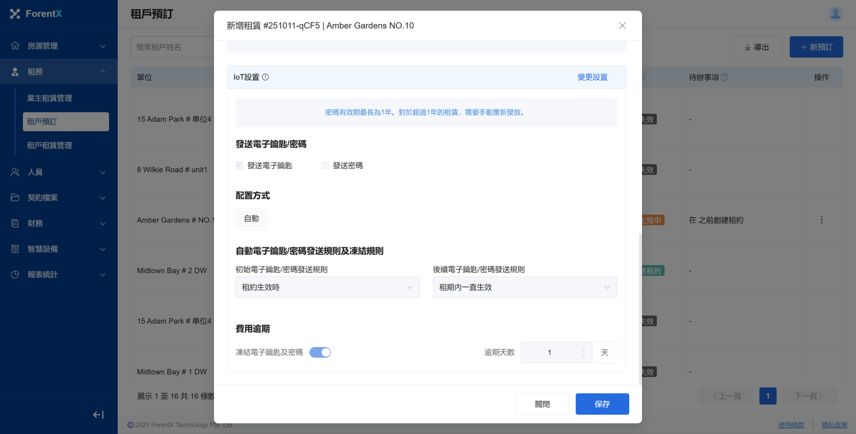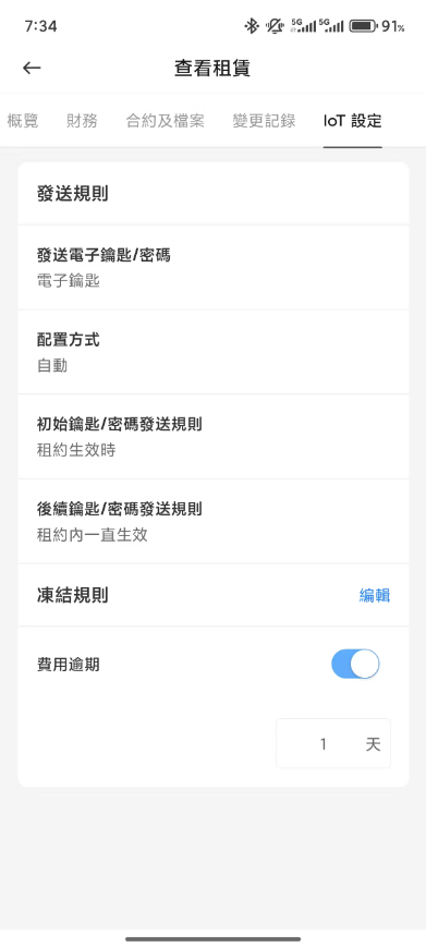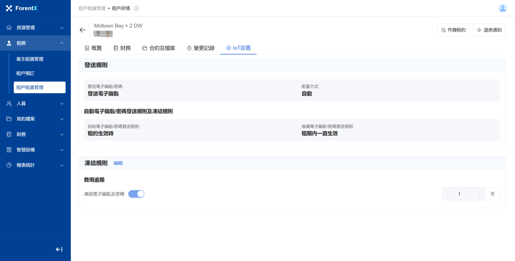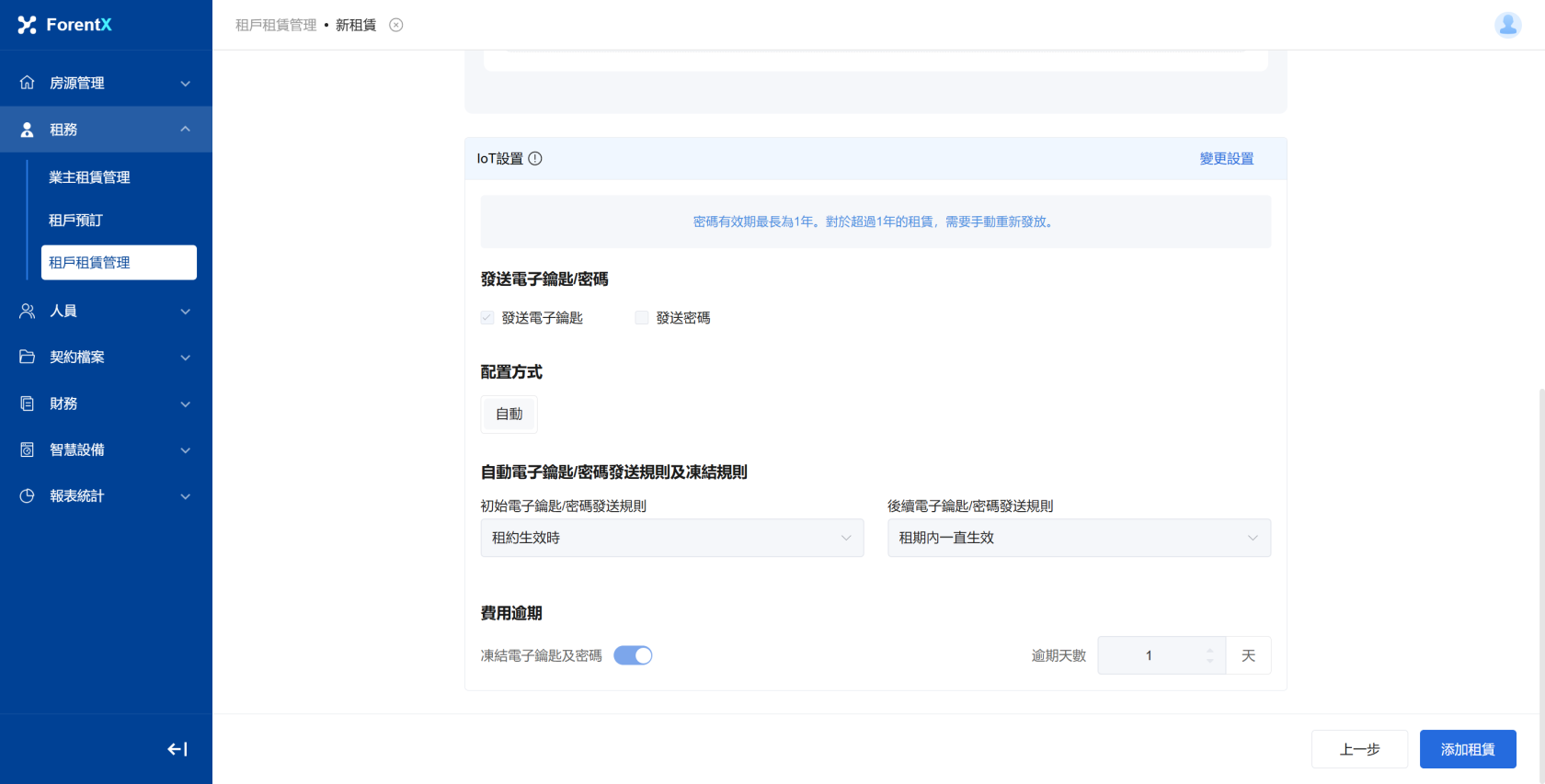步驟1:創建新租約時輸入租約資訊,在輸入租賃資訊後,為相應的物業配寘IoT設定;;