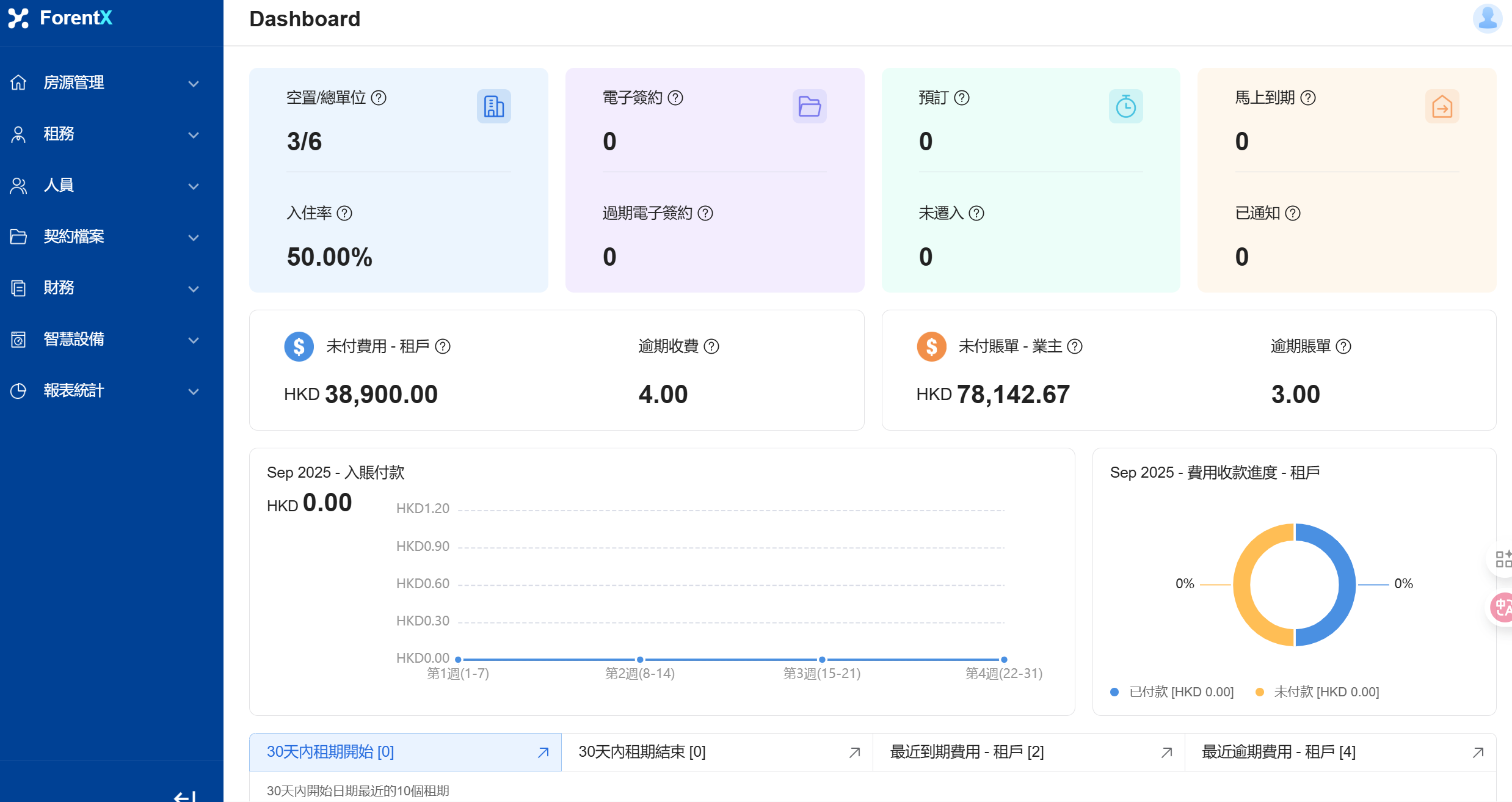 在首頁看板,我們爲您提供了豐富的數據看板,包括入住率、簽約數量、預定數量、待支付賬單等。您可以點擊您想要操作的數據,進行頁面跳轉後,直接進行操作。