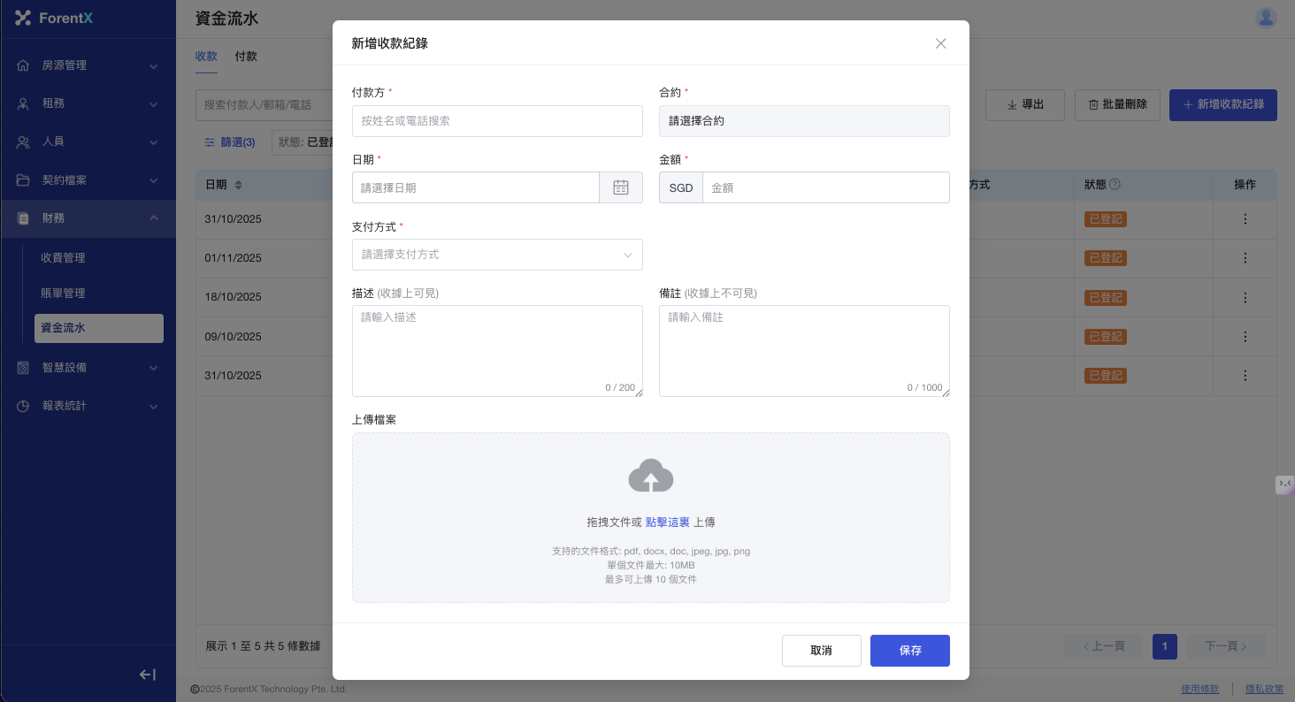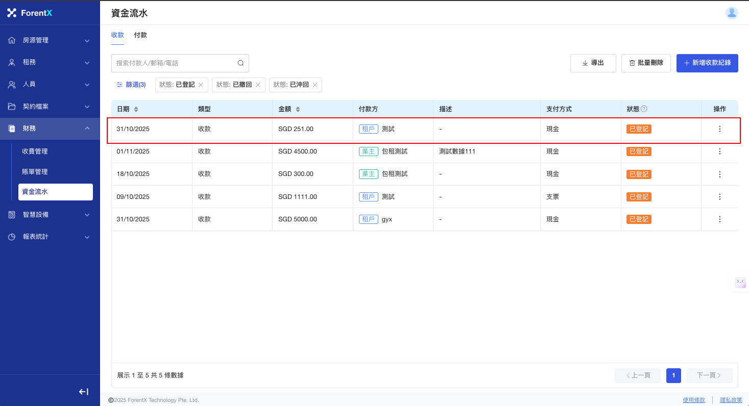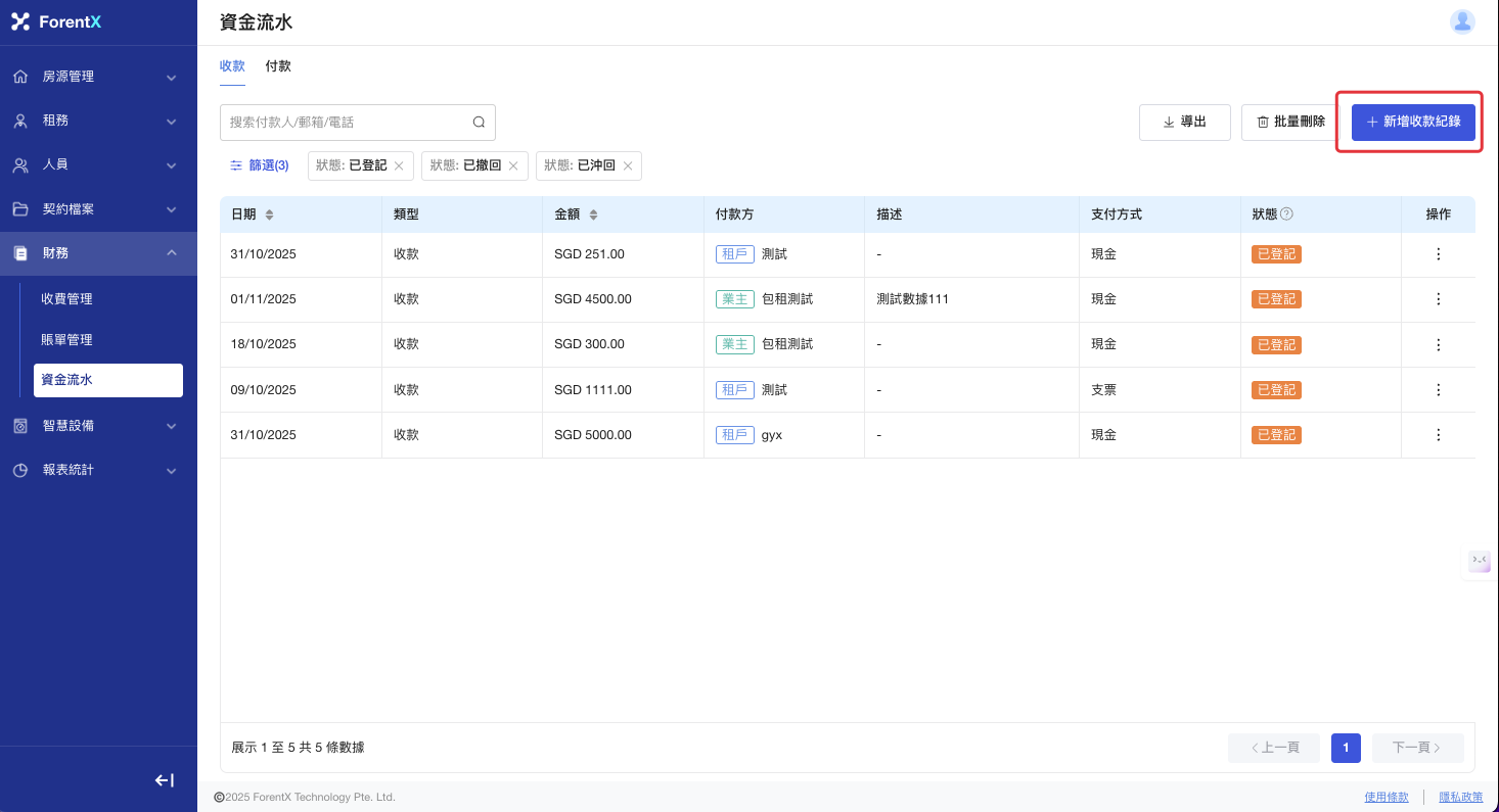 步驟三: 點擊 【保存】,您即可在 【資金流水】 中看到您生成的收款流水。
