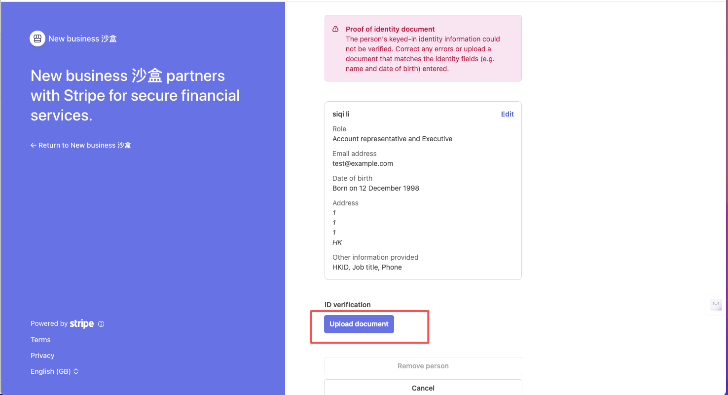| Company Representative | Legal name, email address, position, date of birth, home address, company phone, identity document number |