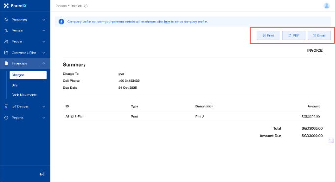 Step 3: Click [PDF] to download the file locally. You can also choose to Print or Send to Email based on your needs.