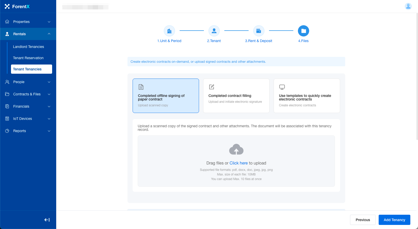During the final step of either the "Create Tenancy" or Convert Reservation to Tenancy process, you will be prompted to choose how to handle the lease agreement. This feature provides three flexible options to accommodate different contract scenarios.
