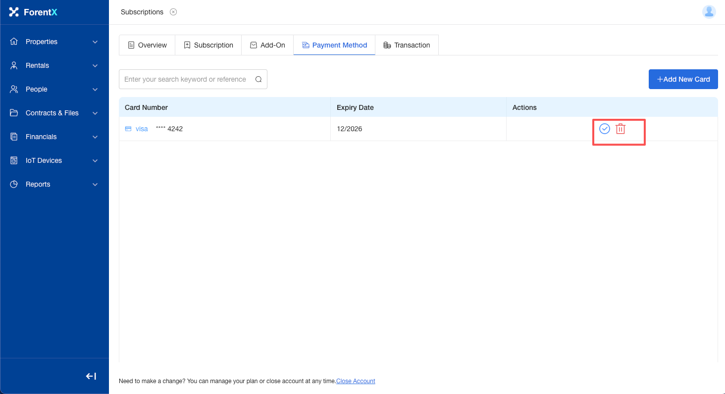 Step 2: You may set a Default Bank Account, which the system will automatically select when you proceed with subscription payment; you may also perform the Delete operation.