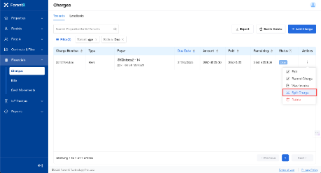 • Step 2: Locate the corresponding bill, click [Actions] — [Split Charge].