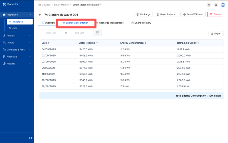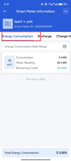 Go to the meter details page and click on [Energy Consumption] to view the electricity usage records;