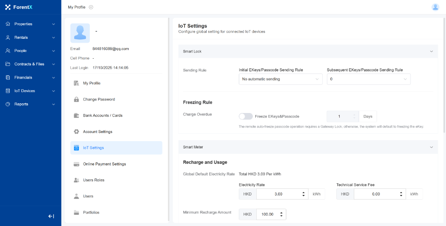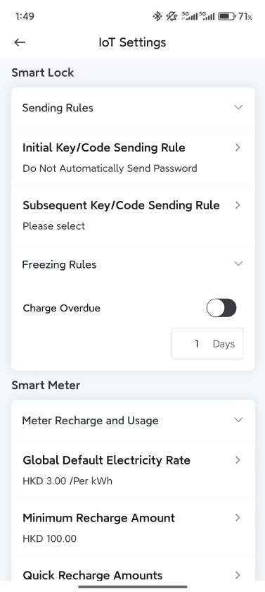 Step3:Select the Smart Lock module to configure Sending Rules and Freezing Rules;
