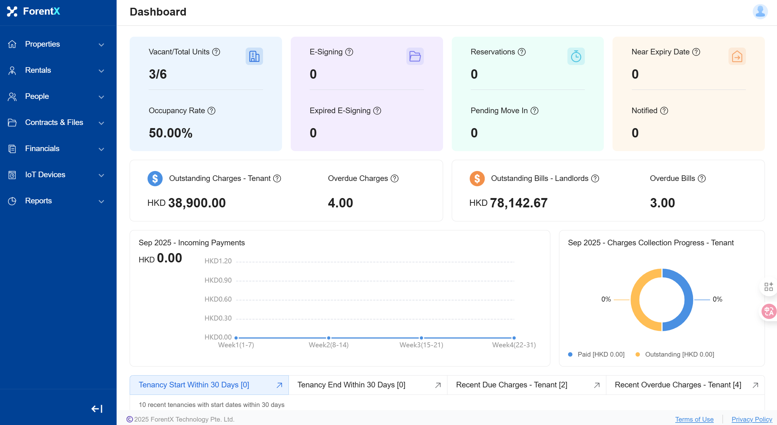 On the dashboard, we provide you with a variety of data dashboards, including occupancy rate, contract volume, reservation count, and pending payments. Click the data you want to operate on, navigate to the page, and proceed directly.