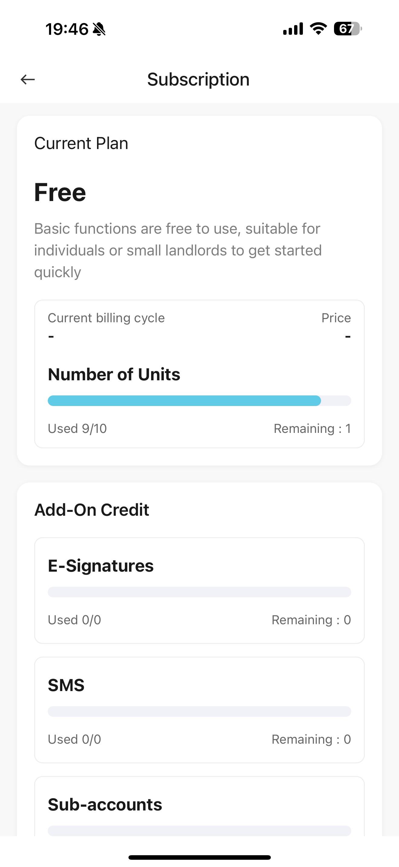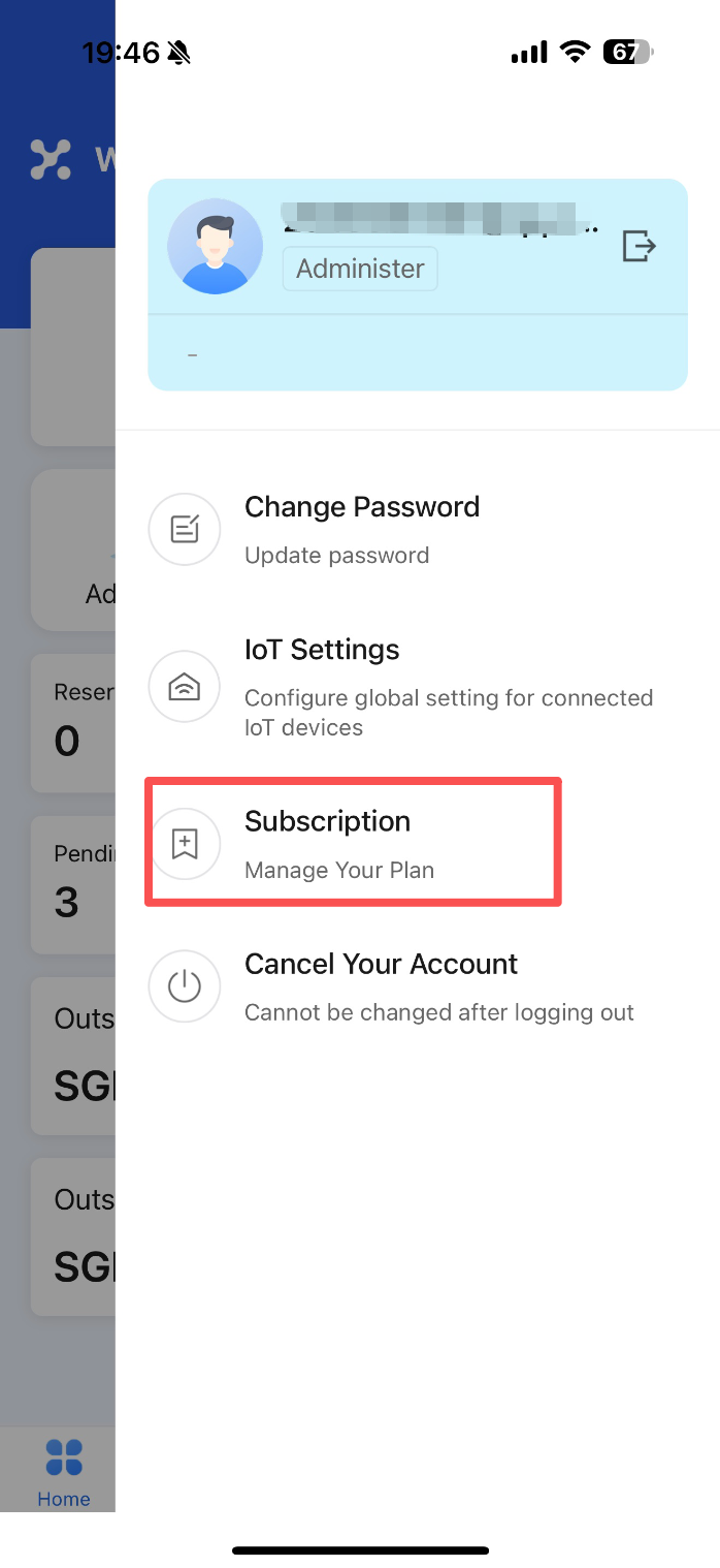 Entry: Select [Profile Icon] at the top of the page — [Subscription]. You can view your current plan, value-added services, usage, and payment information in the Homepage Overview.