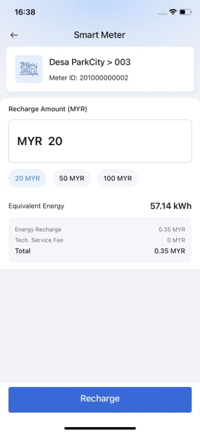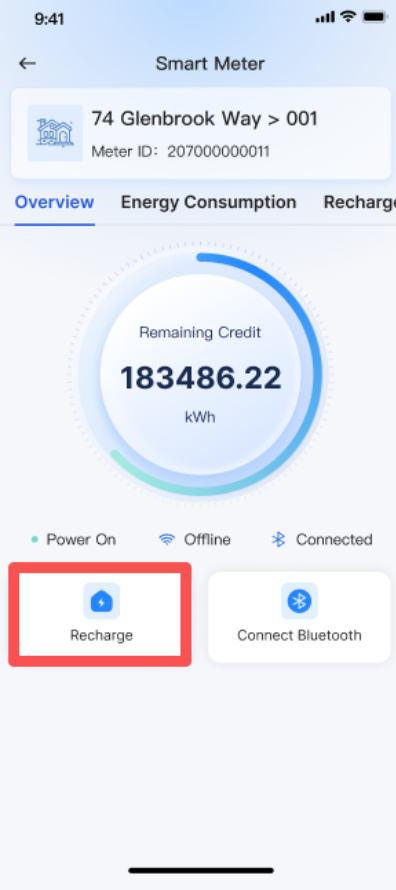 On the [Smart Meter] details page, click "Recharge", enter the recharge amount, and proceed with the recharge;